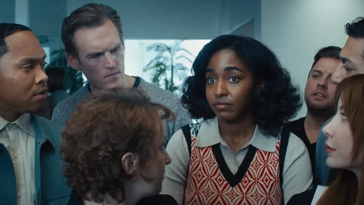 The cinematography in Opus is fantastic. The setting is stunning, and I loved anticipating how it would be presented from scene to scene—the unsettling but appealing heavy saturation in the color palette added to the surrealism of the story. I also liked the shot choices, as Opus finds unorthodox ways to frame its characters. Occasionally obnoxious but still grounded in character, the cinematography frames Ayo Edebiri, the film’s lead character, brilliantly as well.